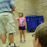 Then, the Grand Finale, Julius Squeezer, Riley has gotten to hold him at a party before, but this time, Regan got to go up and let him check her out, he sniffed her hand and I guess she smelled pretty ratty, he got right in her face and sniffed some more. She didn't back down or freak out, she stood her ground. They really enjoyed learning all about these animals, even had some good questions for the Zoo Man, and want to go visit his zoo someday soon.